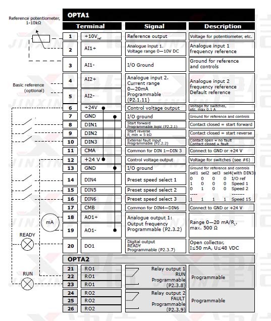 偉肯VACON是丹佛斯集團(tuán)旗下的全球領(lǐng)先的變頻驅(qū)動(dòng)及逆變器產(chǎn)品品牌。偉肯變頻器擁有完備的電機(jī)和過(guò)程控制功能,產(chǎn)品的可控性、可編程特性、安裝便利性及模塊化程度更高,可根據(jù)各行業(yè)過(guò)程控制應(yīng)用的不同要求實(shí)現(xiàn)電機(jī)驅(qū)動(dòng)的優(yōu)化,并通過(guò)選件卡接入各種現(xiàn)場(chǎng)總線系統(tǒng)。用戶只需根據(jù)應(yīng)用進(jìn)行簡(jiǎn)單的選擇與設(shè)定,即可在精確的電機(jī)控制與能源節(jié)約方面獲得切實(shí)的利益回報(bào)。以下是偉肯各系列變頻器的接線示意圖。
