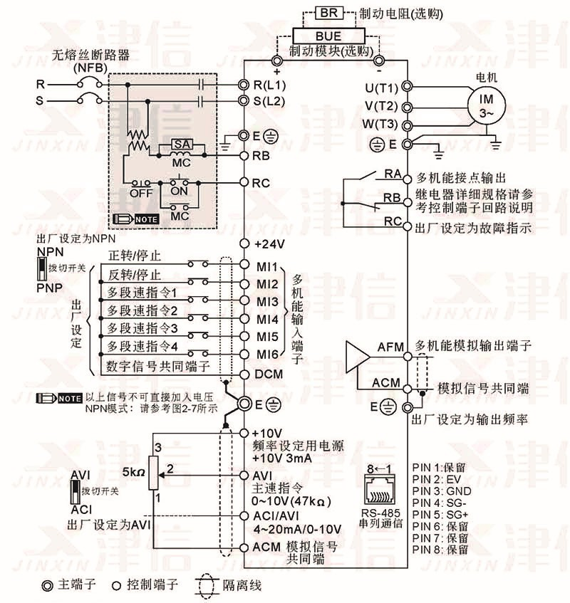 l 控制配線請盡量使用隔離線,端子前的隔離網(wǎng)剝除段請勿露出。