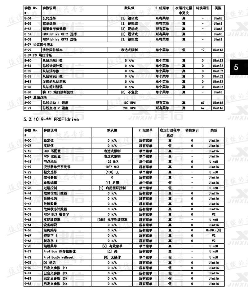 9,PROFI drive通訊參數