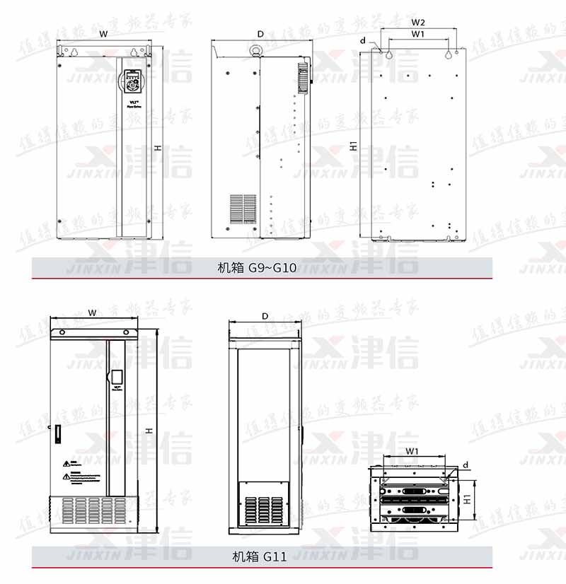 | 機箱型號 | 適配的功率范圍 (kW) | 外形尺寸 (mm) | ||||||