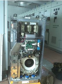 該變頻器更換逆變模塊,將板卡及電容箱依次安裝后,測試,符合上電條件。給變頻器送電,開機、輸出電壓平衡,帶負載到額定電流,變頻器發(fā)熱也正常,該變頻器修復。