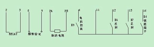 K6和K7分別控制電機正反轉,K4為使能端;頻率給定方式是PLC輸出0--+10V的電壓信號對應0—50HZ;并且KEB也是利用變頻器自身的+15V源極開機方式.以上條件丹佛斯VLT2800全部可以滿足并且能夠達到客戶所有要求的功能.